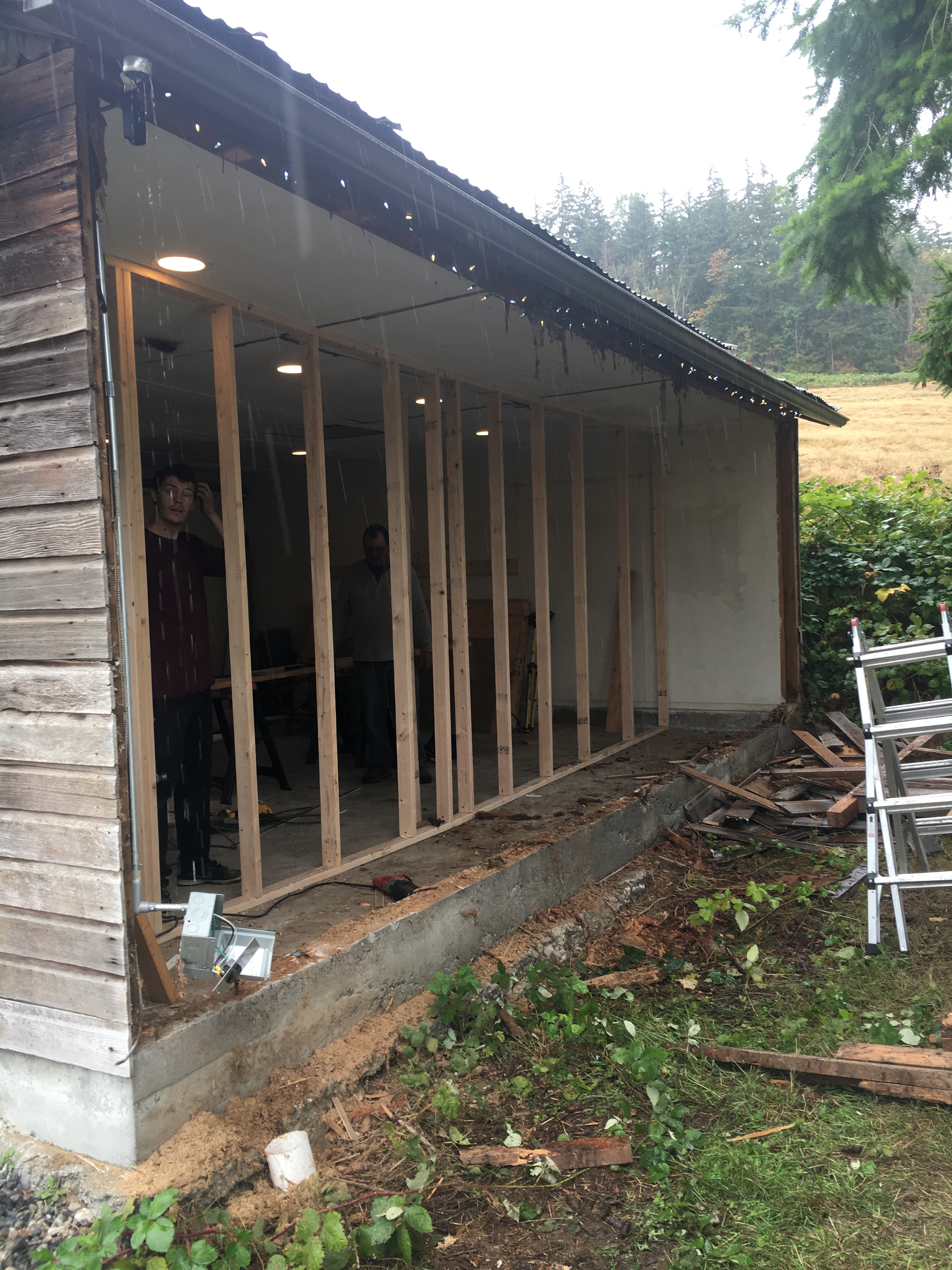 The south wall of the shop needed to be replaced due to bees, so it was affectionately deemed the “Honey House”. It took a good weekend to replace the wall, and another to switch out the swinging barn doors for a solid wall with a window. I was astonished at how quickly construction can go! I’ve never been involved in a project like this, and I was so excited to be a part of all the progress (and impressed by the speed and instant gratification!), though I’m sure not all of this process is going to be quite so instantly gratifying.