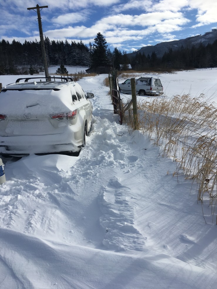 School got cancelled Wednesday as well, and we got snowed in from Wednesday to Saturday! It’s been a long time since the snow has prevented me from driving, but snow drifted over our driveway and effectively shut us in! Luckily we had some good friends who were kind enough to deliver beer to us on Thursday afternoon. We were able to get some work done on the Cabin at the end of the week, but I decided I’d better add all my snowed in photos to this post instead, since it’s already all about the snow!