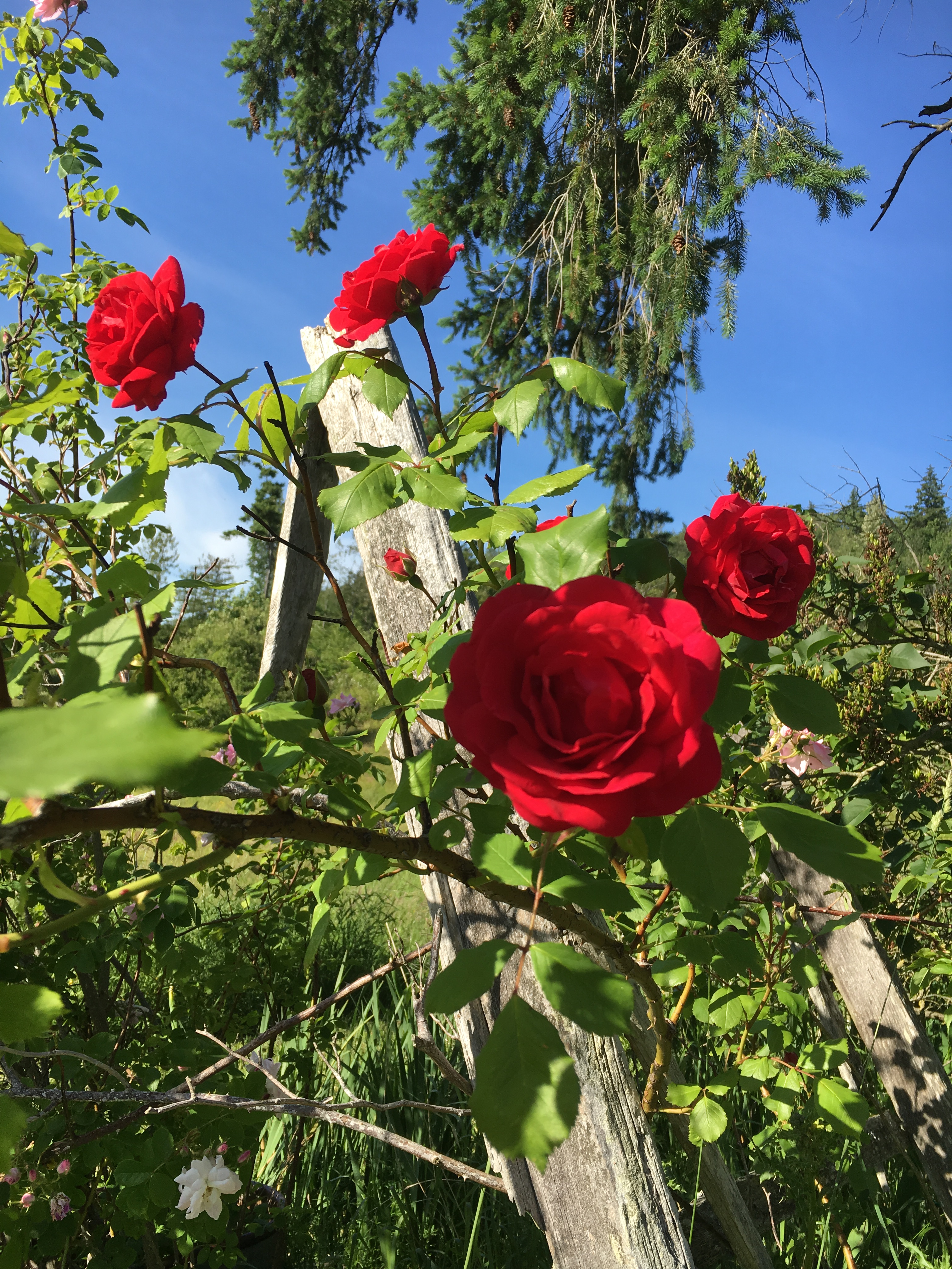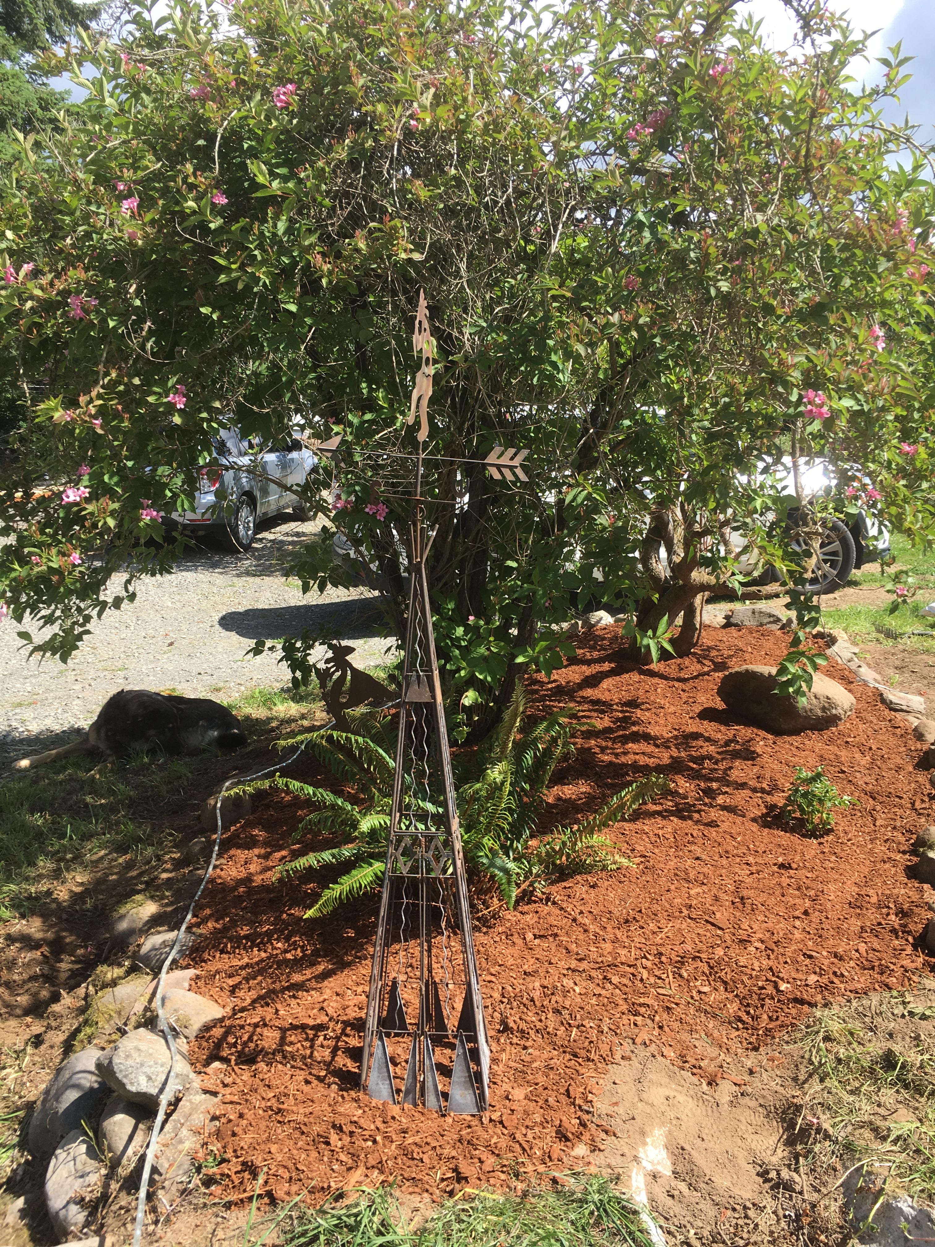 I’ve been working on keeping the landscaping in order by mowing and weed eating. For my birthday, my in-laws got me a battery powered weed eater that’s SUPER COOL. I spent days trying to get the tall grass (nearly hay) all cut down on the sides of the driveway. For some reason there is a bunch of thick steel cable, electric fence wire, electrical wire with plastic around it, and barbed wire all wrapped up in the blackberries and along the whole length of the north side of the driveway. I got nearly everything cleared and gave up on that section of blackberries in the middle. I haven’t been able to use it much the past couple weeks as we’ve been hitting the Cabin project pretty hard, but it’s getting to be time to break it out again! I also worked on redoing one of the garden beds that previously was overgrown with this crazy invasive rose bush. The change was astounding!
