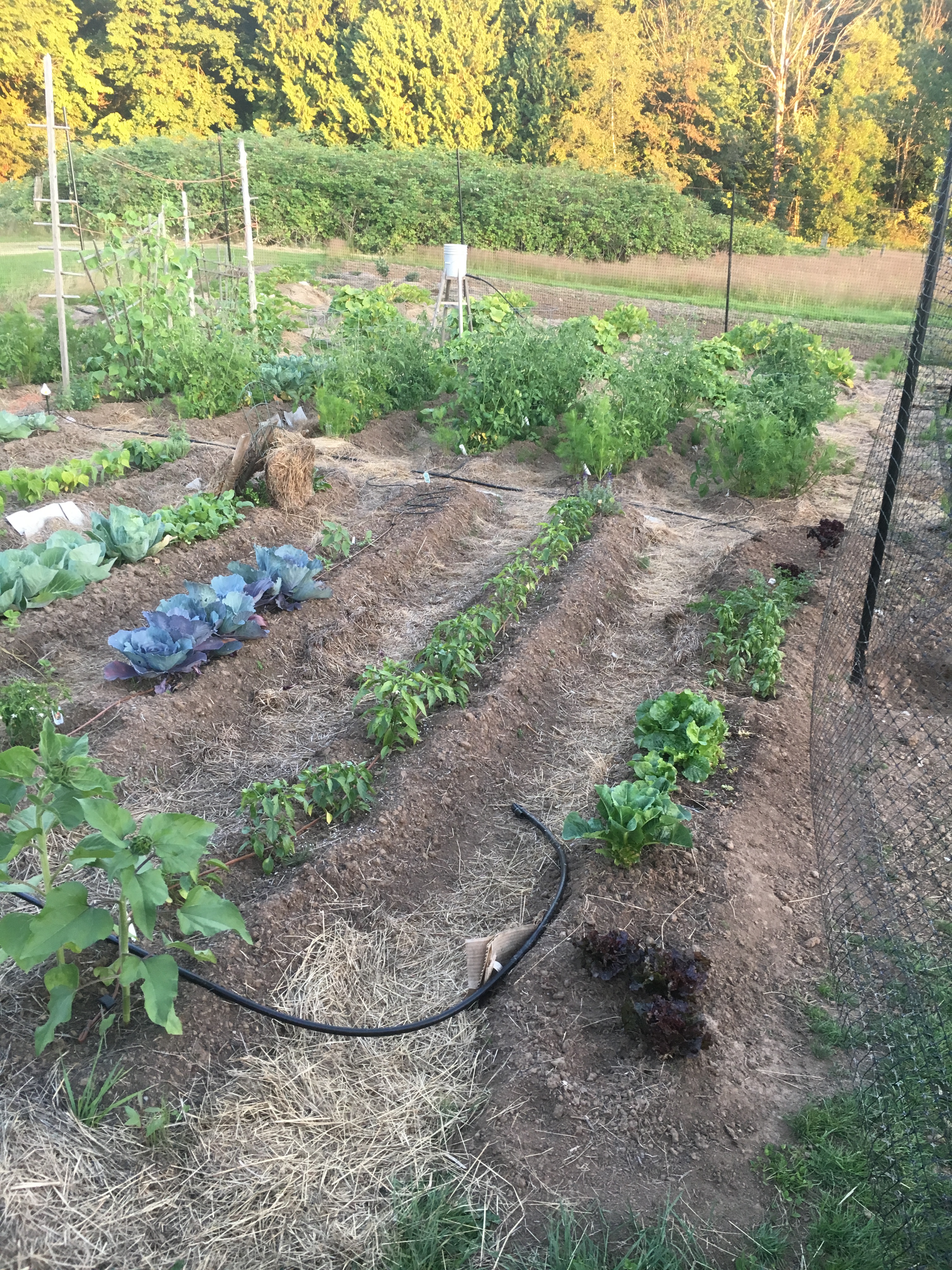 My FIL worked very hard on getting a ton of irrigation lines around our massive garden, and my MIL has been putting in endless hours cultivating the garden into what it is now. (Though if you mentioned it to her she’d say, “oh no, I’m just puttering!”). We are already eating massive amounts of cucumber and zucchini, as well as various types of greens. We’ve had cabbage and cauliflower and a few tomatoes. Radishes and green beans. Probably more that I’m forgetting. She’s harvested and prepared everything. She’s amazing. I’m hoping that next year the Cabin will be completed and I’ll have time to help and learn how to plant, grow, harvest, and prepare all the goods for storage to be used throughout the year. This year is a getting settled in year, and the homestead is already so enjoyable. I can hardly imagine how awesome it will be when we’ve got real homes and are better set up (and have more animals!!).