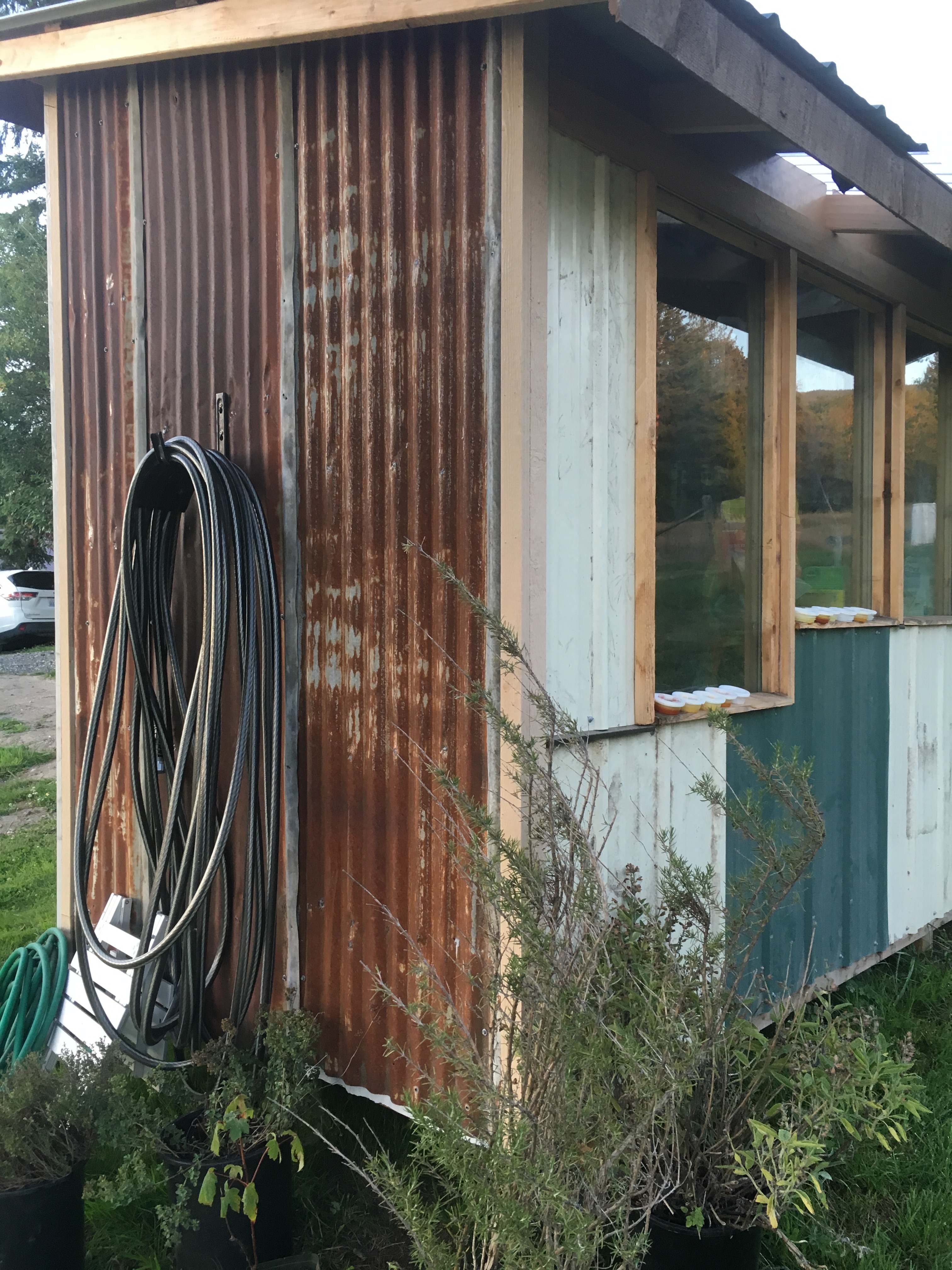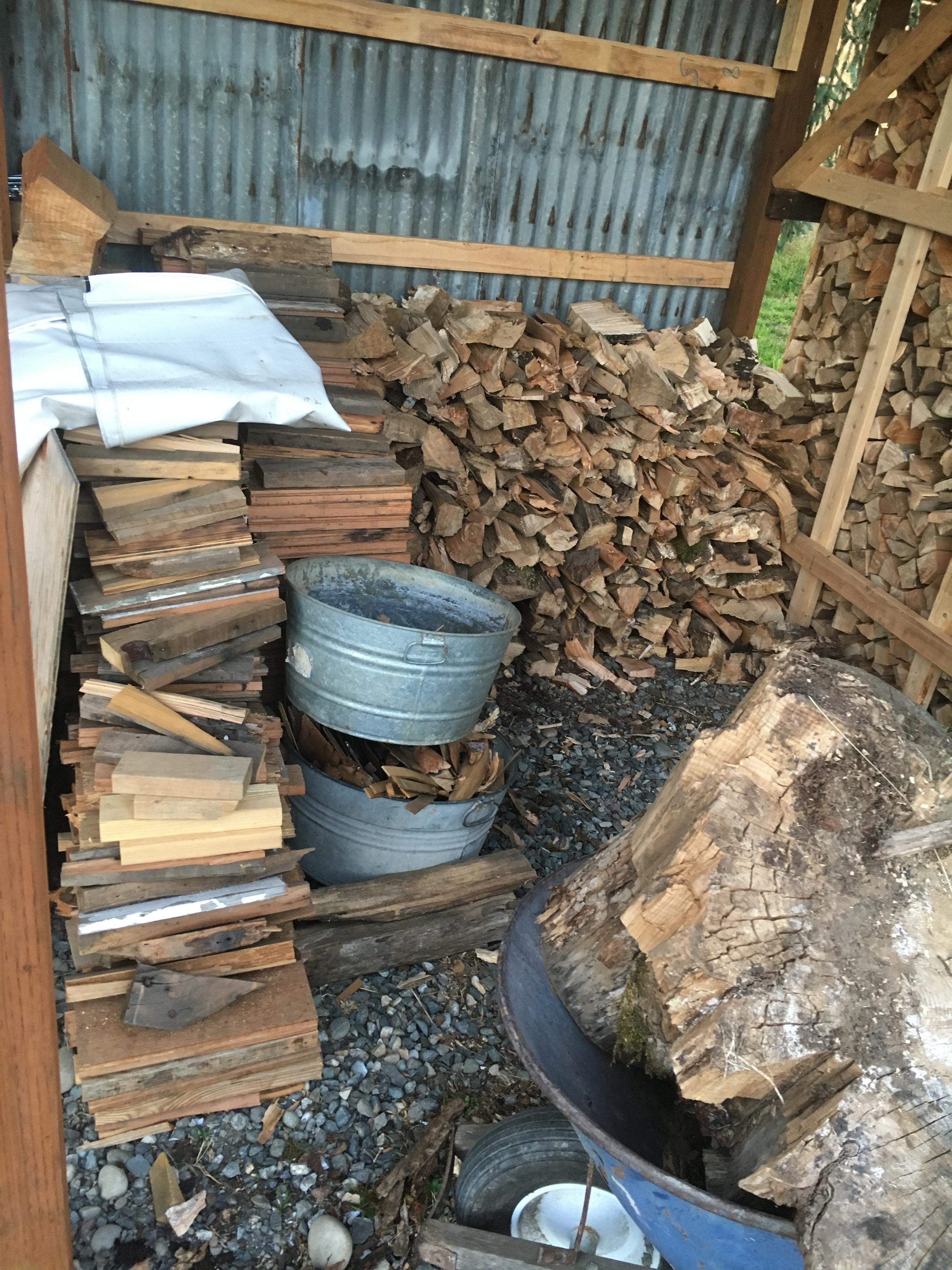 My FIL is essentially retired, so he spends his days on the homestead working tirelessly at improving the spaces. He built this super cute garden shed complete with south facing windows and a skylight. He also has been chopping wood like a mad man in preparation for the winter (we’ve only got wood stove heat thus far!).