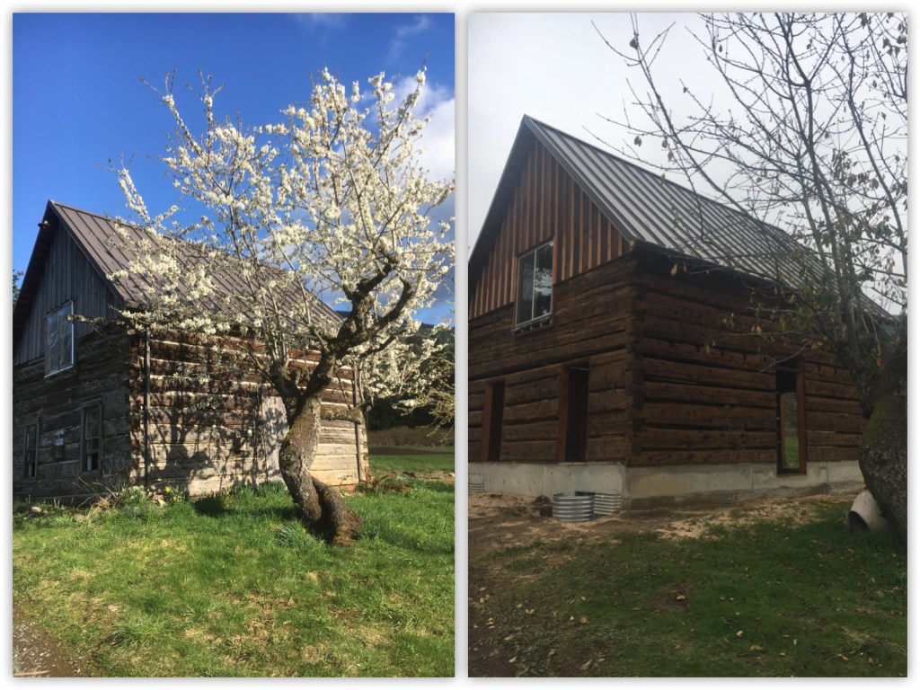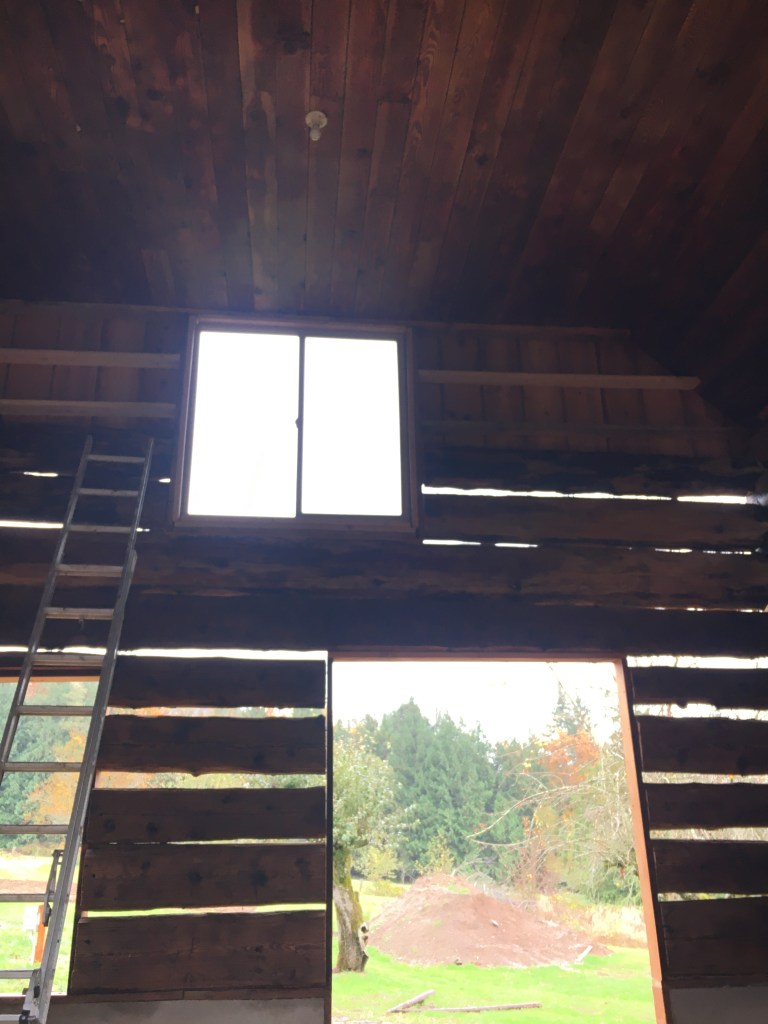 As we stained we also finished trimming the board and batten from the window rough openings and installed the windows. This was by far my favorite transformation as it felt like the first step towards making the Cabin habitable again. Shortly we will have the final board and batten stained, the lower level windows in, and then the doors. And then finally we will start the re-chinking process, sealing the Cabin!