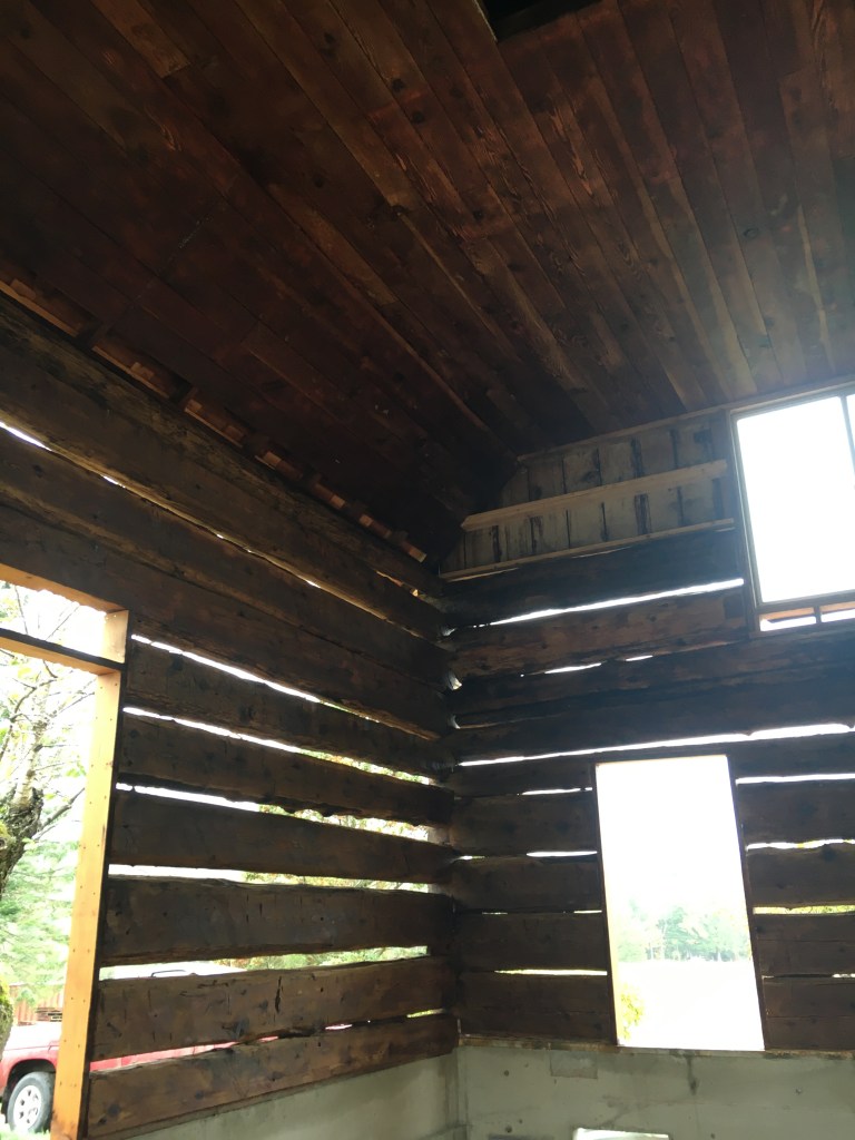 The coolest thing about this is that all those boards and batten are from the Cabin. Even though they are a little lighter, the Cabin is still almost entirely made from its original logs. Besides the majority of the East wall. But just ignore that side. It’s only temporary. For years. Probably.