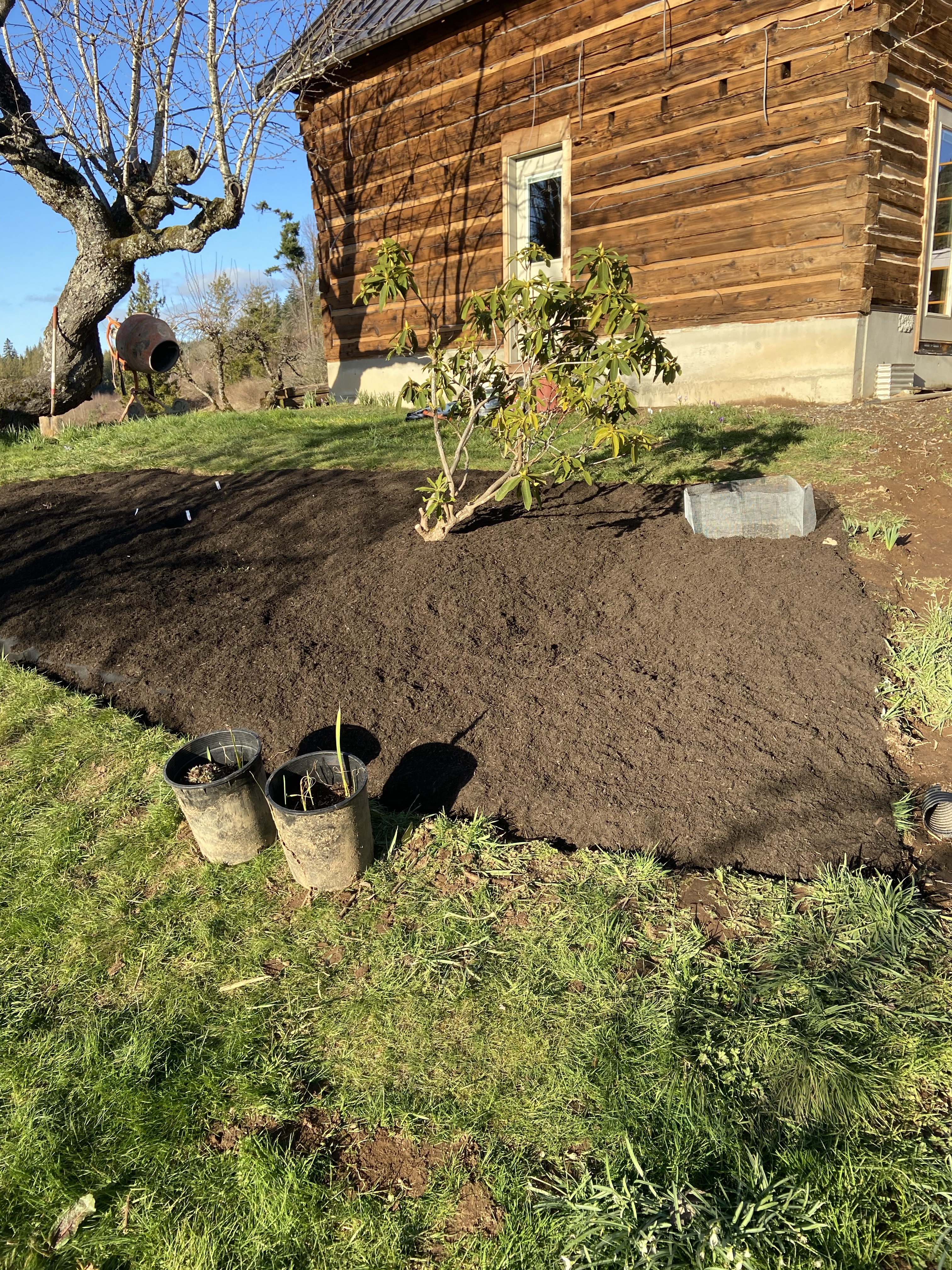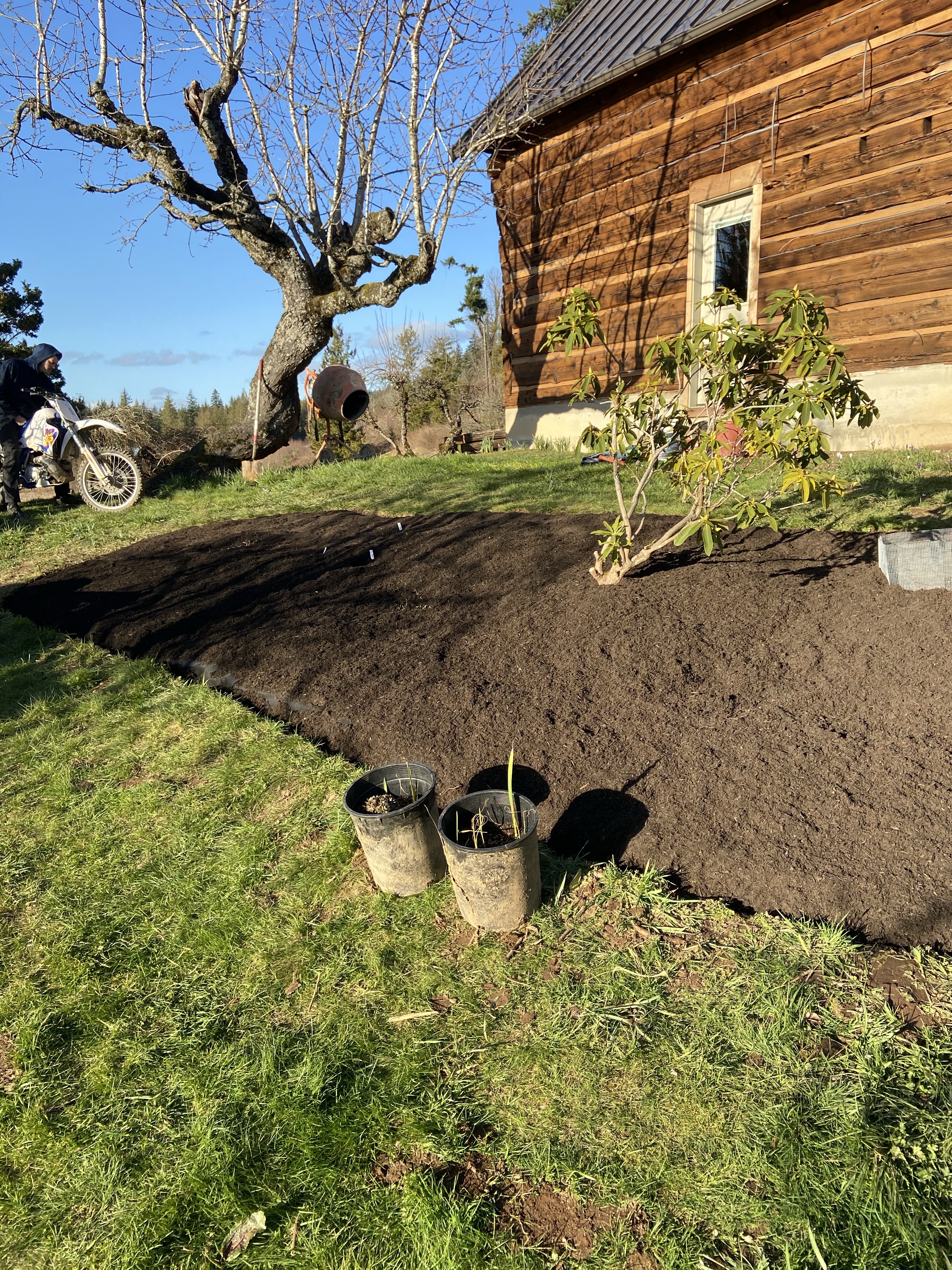 I made this new garden bed (which I’m fairly certain is an old garden bed)! In Fall of 2018 when we bought the property this area was overgrown by blackberries and tall grass. I cut that all back and found the rhododendron as well as a couple of peonies. None of them were doing very well last year, but hopefully this year they’ll recover!!