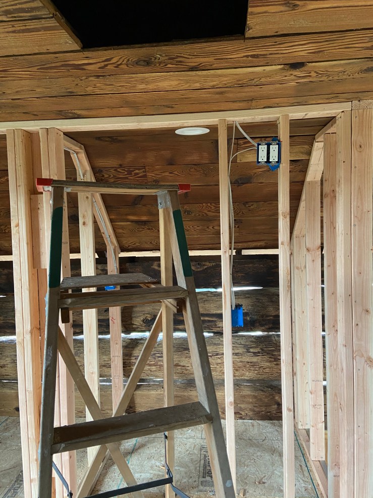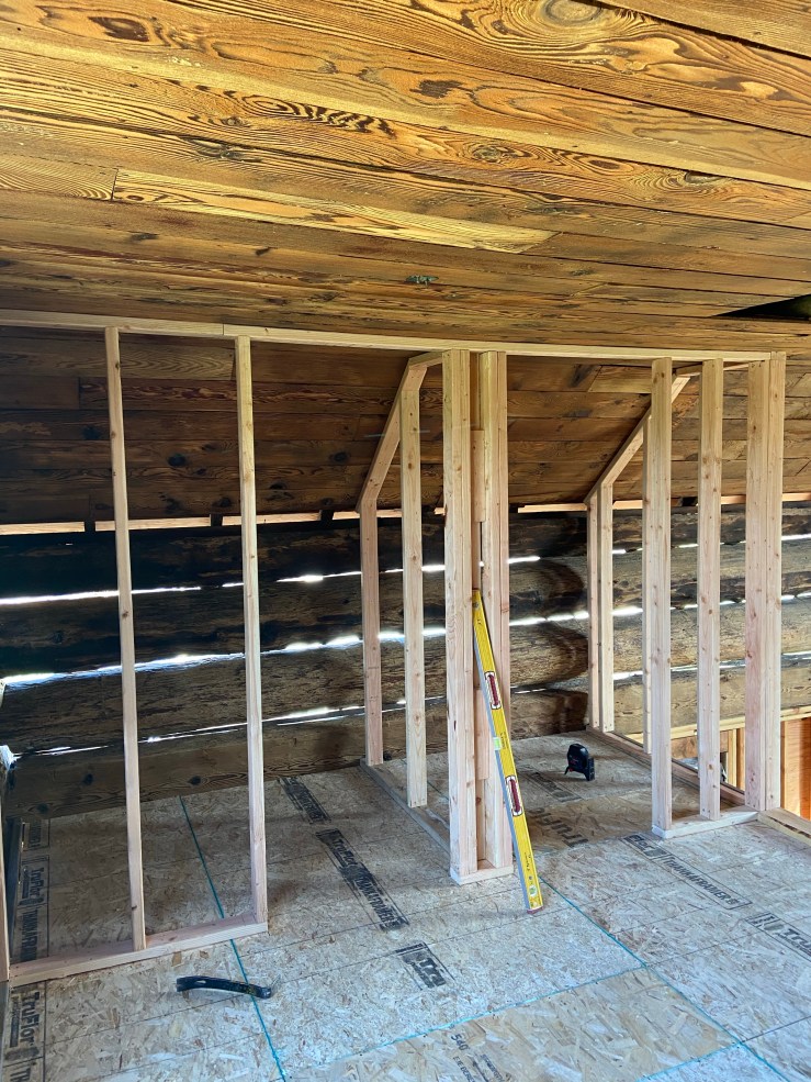 So then we moved upstairs and framed in our 1/2 bath walls and closet walls. The loft is going to be a little short for very (very) tall Husband, but we figure it won’t be our forever bedroom as we plan to do an addition to encompass kids in the (near?) future.