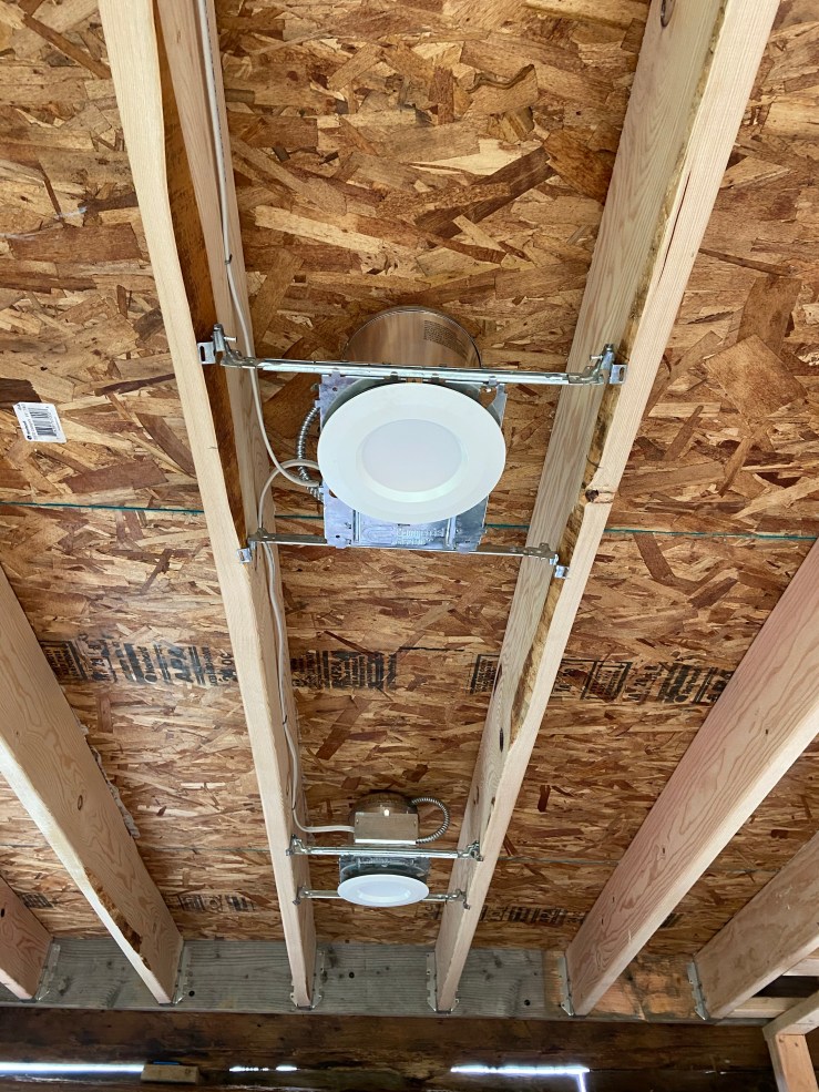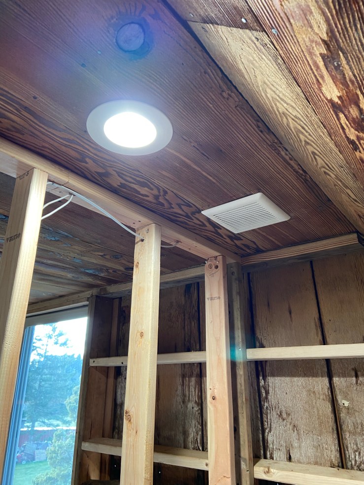 The next day I, and I do mean I, installed and wired our first to lights in the Cabin!!! Husband was doing some other mildly important plumbing and water lines up to the loft 1/2 bath. But I got to say, “let there be light!!” (after Husband wired the wire into the breaker box, I’m too chicken for that – yet). I don’t know if you can tell, but I was quite impressed with myself.