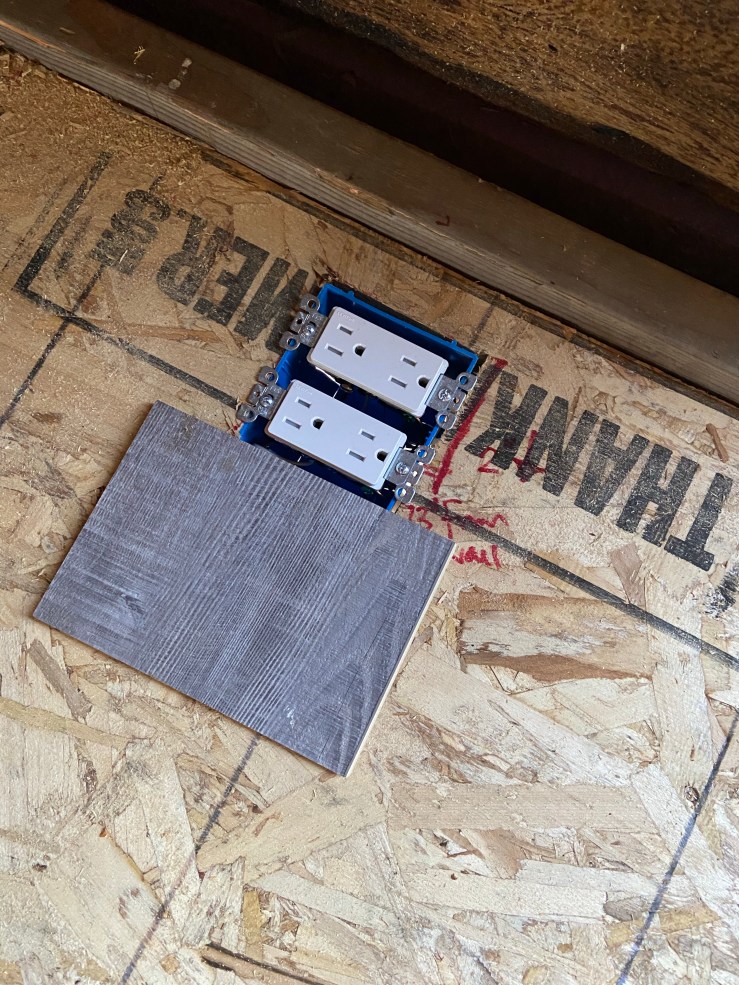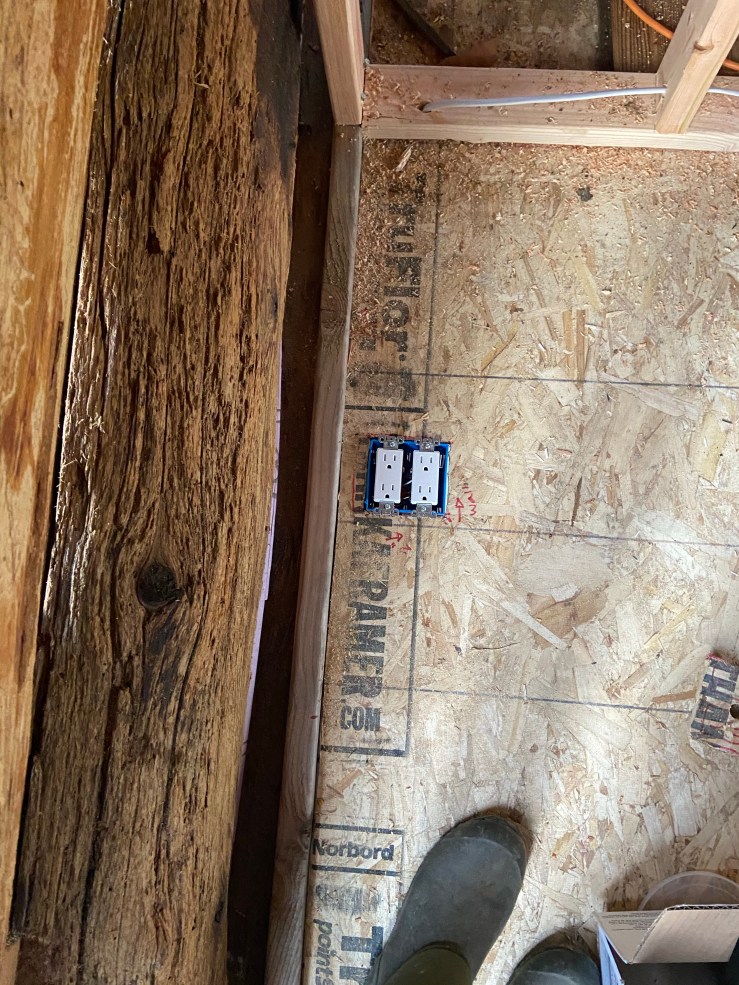 Once the breaker box had a forever home, we got right to work wiring a few outlets for the future living room so we could continue to use power tools (and have MUSIC) while we work! Now, floors and lofts and framed walls are amazing and all, but outlets. Now there’s a way to make a place feel homey!