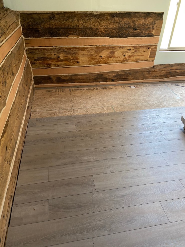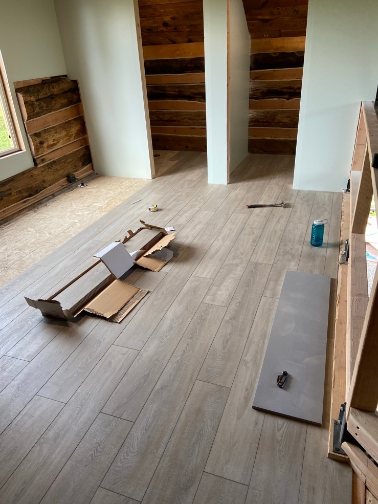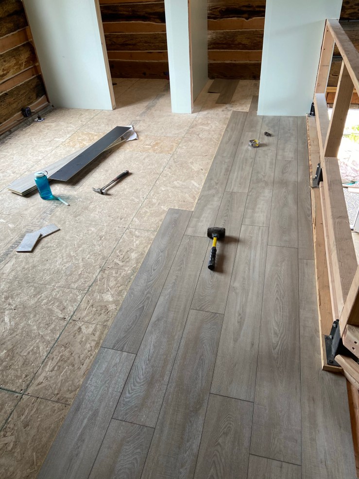 THEN WE PUT THE FLOORING IN. This project took the entire day. And I was incredibly sore the following day. Like I’m talking crazy sore. For 3+ days. But it was worth every second of pain. The flooring absolutely transformed the place.