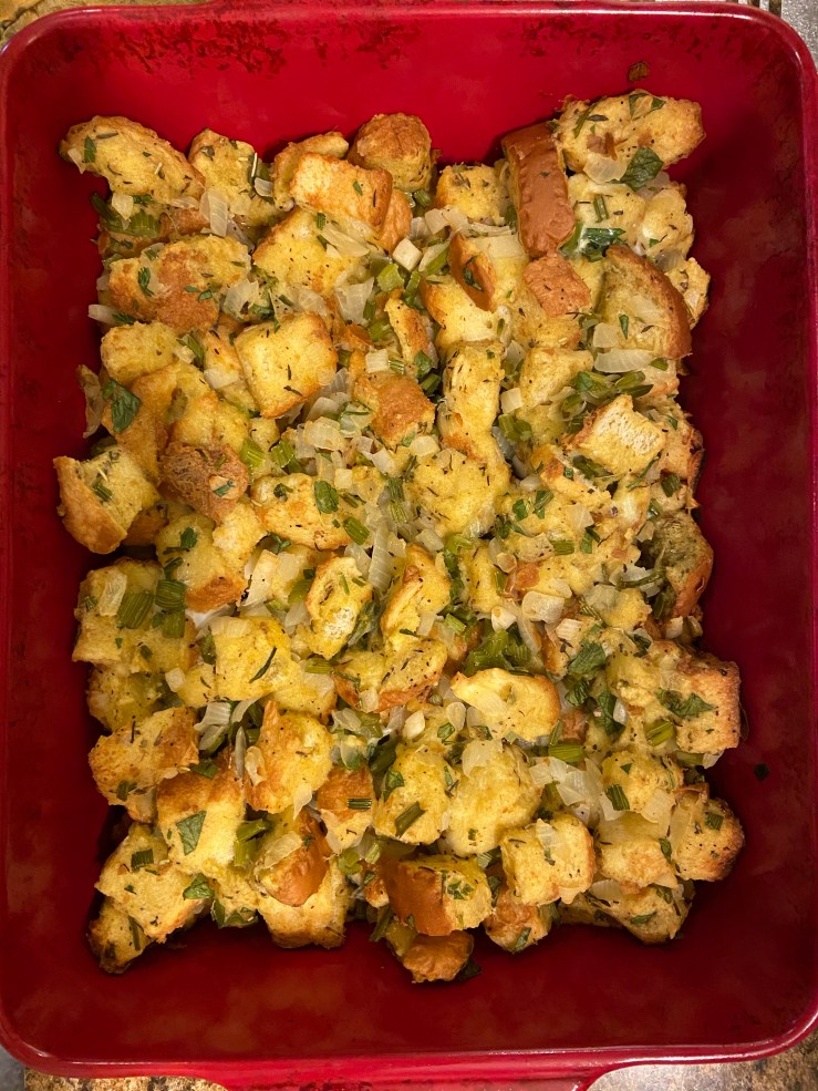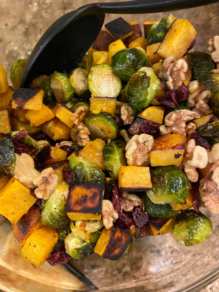 We had a small Thanksgiving with just the In-Laws and us (as is probably the case for most this crazy year), and I was in charge of the stuffing and a side I picked. The brussel sprouts with cinnamon (homegrown) butternut squash, walnuts, and cranberries was a hit! The stuffing I am going to have to try again next year to make a little better…with a fancy double oven…I hope! On Friday we got to work again and put down flooring!