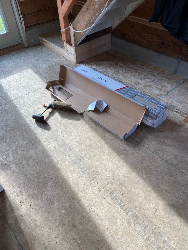 Laying down flooring was definitely one of those things that we thought, “this won’t change anything. It’ll just be a little easier to clean, but the function is already there.” We were so wrong. Putting the flooring down transformed the Cabin into a home. We still need to finish putting trim down, but at this point we are feeling very happy about the Cabin progress.