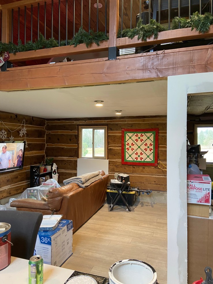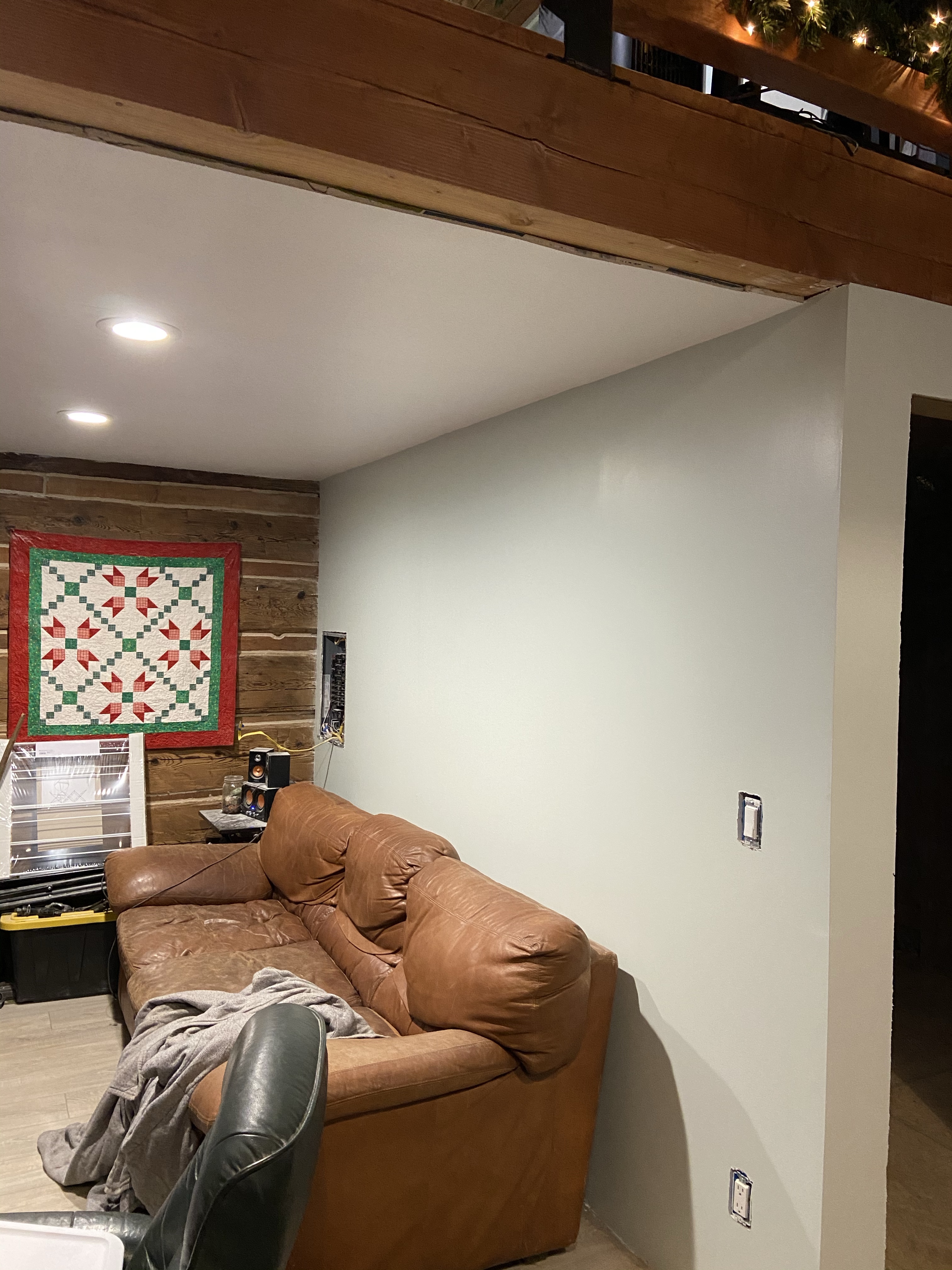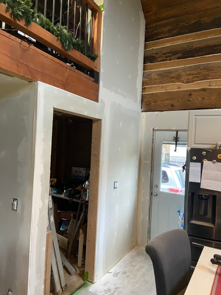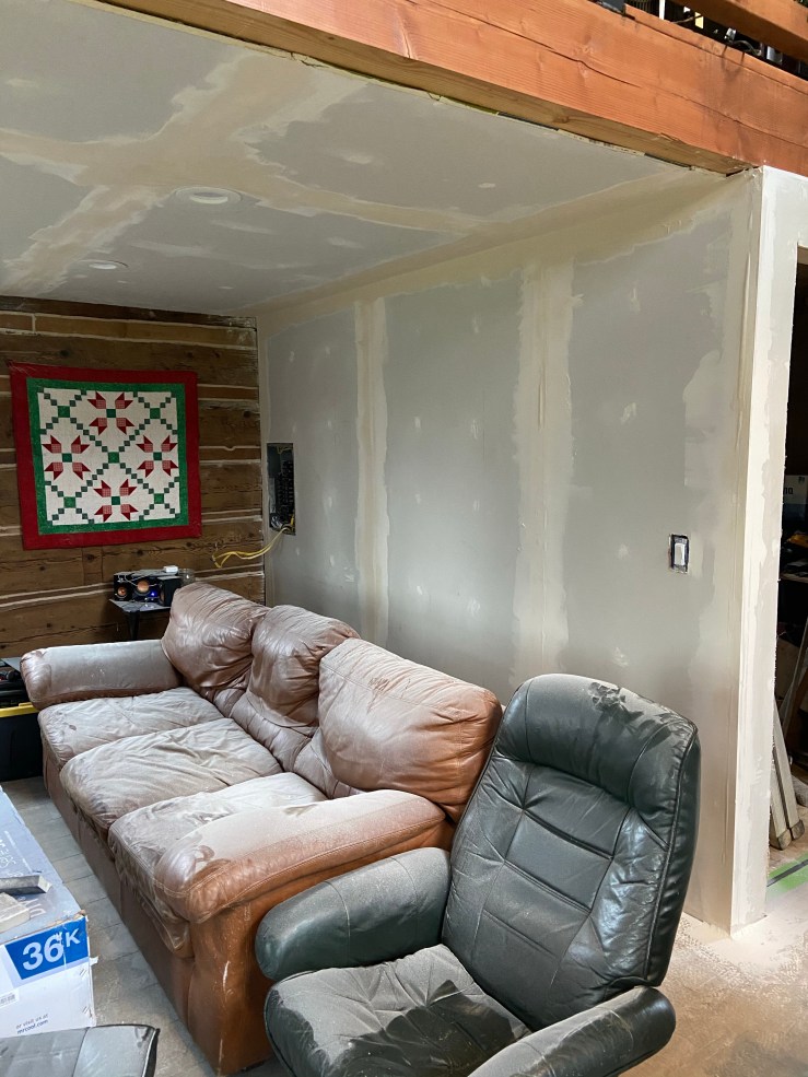 We also finally finished taping, mudding, and sanding the weekend before, it was an incredibly messy project. The worst part is that it’s messy, and then you clean up, and it’s just as messy the second and third (and fourth) time; but you can’t just not clean up between if you’re living in the space! We did, however, get smarter about moving and covering things to make the clean up easier each time.