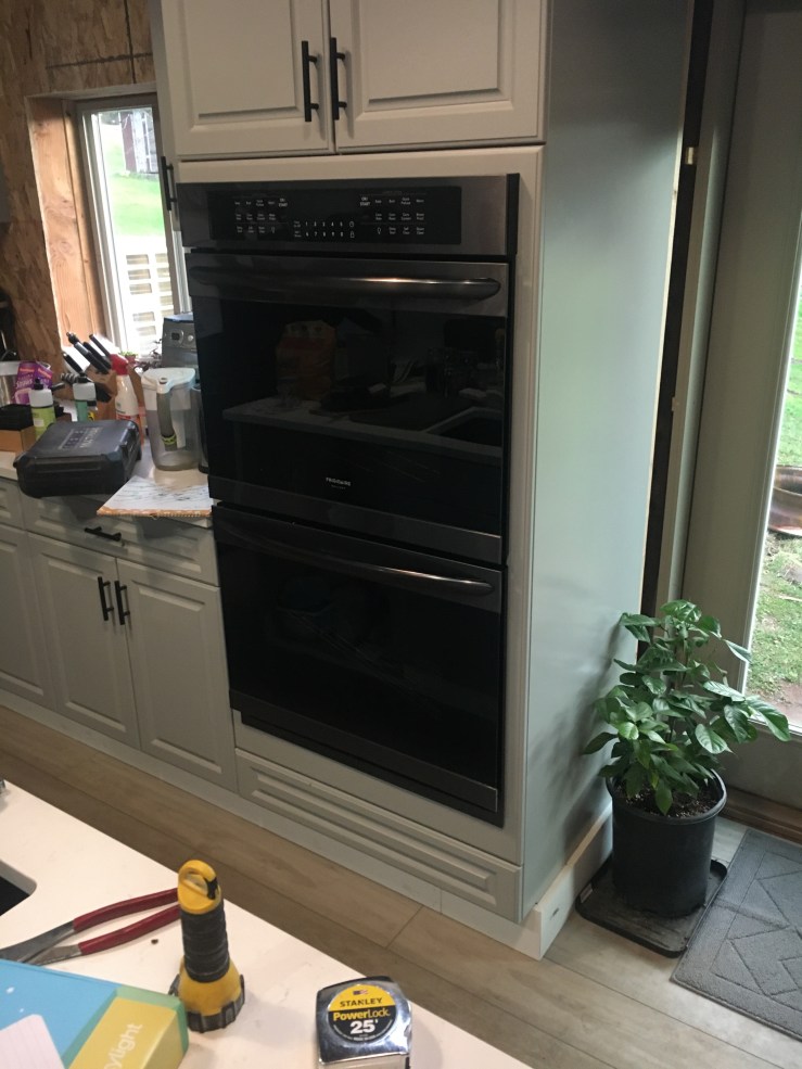 Guess what!! This past weekend Husband installed our oven and our microwave! I could not be happier or more excited. We still need our dishwasher (still waiting on delivery delays); to finish up the cabinets around the microwave now that it’s installed, and backsplash and trim, and blah blah blah, but the kitchen is now fully functional!! And it looks incredible. The first thing I did in the oven was bake some chocolate chip cookies. And then I made another batch and cooked half of the cookies in each oven. Just because I could!