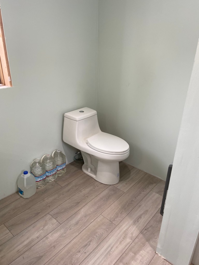 So, it’s June. JUNE. I can hardly believe it. Plenty has happened since my last update on the bathroom. We were able to shower in our own home for the first time on January 31st (hurray!!!!). Old news now :). We also have had a functional downstairs toilet and vanity since mid to end of February. And we completed a *small* amount of trim installation. We are absolutely in the midst of a much needed, highly anticipated Cabin work hiatus. However, it’s already been months….and it really might drag on a bit longer. We have some projects we need to get done this summer while it’s warm and dry out, like a wood stove and improved insulation. Because brrrrr it was cold last winter! But we are really enjoying taking it slow and easy, and really just enjoying the fruits of our labor.