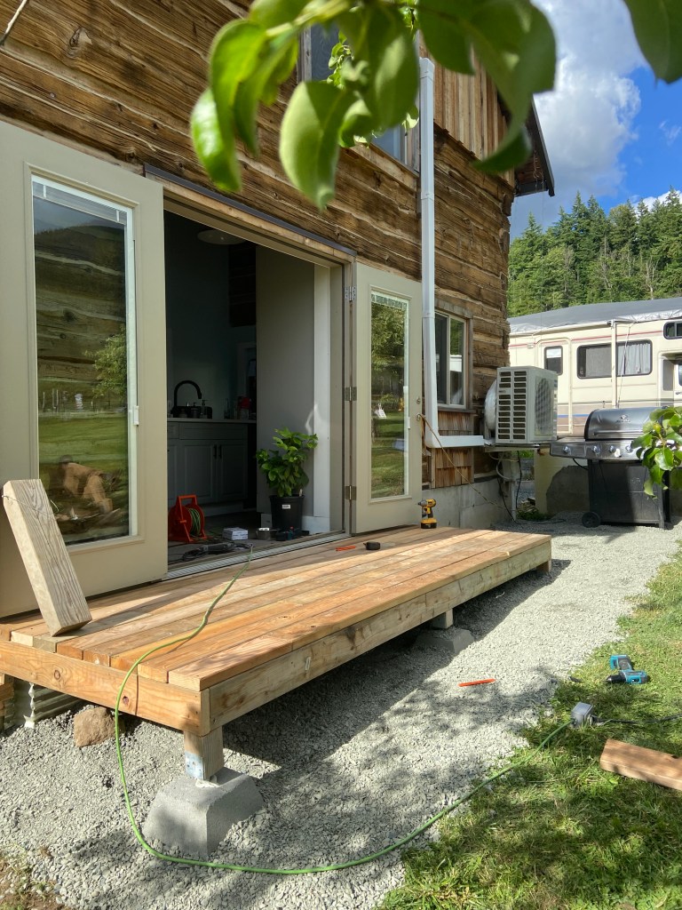 We also graveled our current driveway/future addition site! That was an amazing project, it was quick and fairly easy, and made a large area so much more functional (and less of an eye sore). And, of course, I had to throw in a couple pictures of the goats and Jabba, they are too precious not to. Then, our most recent project, which was incredibly cheap and changed our outdoor space (even more) into my happy place, we upgraded the super sketchy ramp! And while it is temporary, it is long term temporary, so we made it as functional as possible.