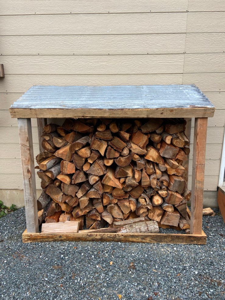 Once the stove pipe was all installed we got to have our first fire! We love wood stoves because of the dry heat they provide and how homey and cozy they make the space feel. We then quickly got on building a temporary wood shed for easy fire wood grabbing this winter. At this point I am just so excited for the seasons to change. It’s a little too warm for nightly fires currently, but we’re happily waiting the colder weather to welcome the cozy warm fires. And also, I adore the holidays. And they are coming!!!