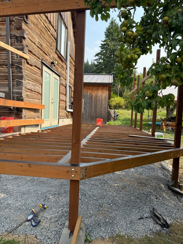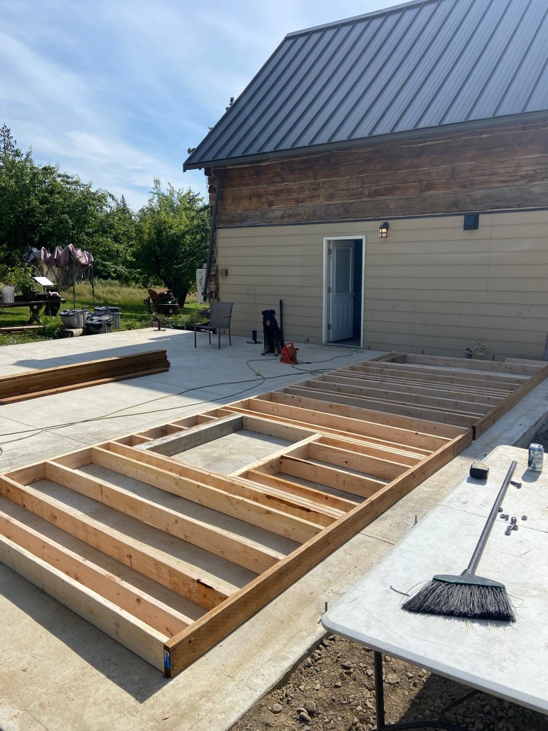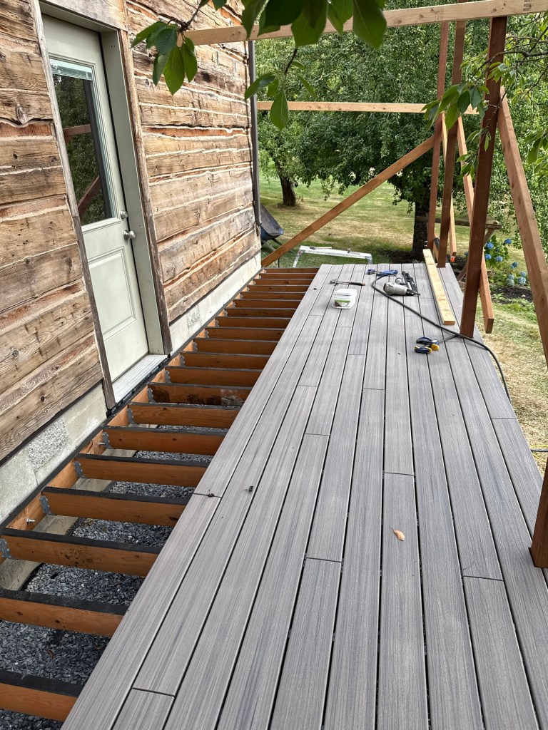 This last Summer we paused the progress inside to get some outside projects checked off and we built the deck! Eventually we plan to roof the deck so we can utilize the space throughout the year. For now, we are very happy to have some extra level space to use when the weather is fair.