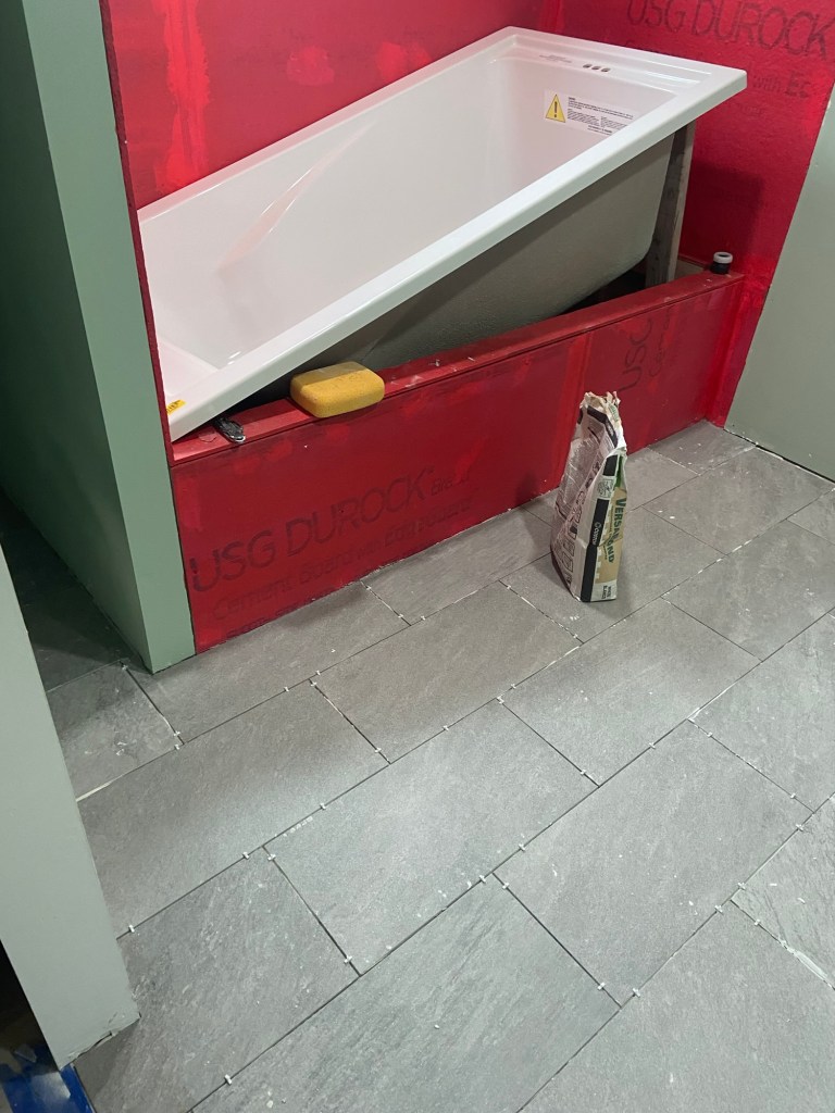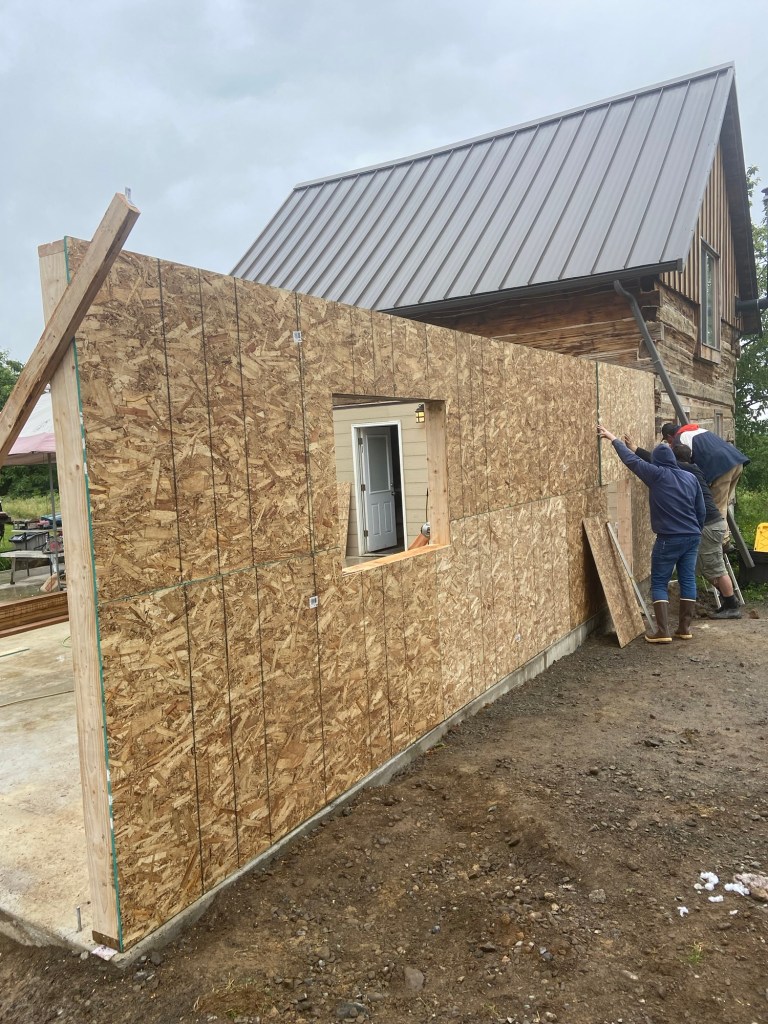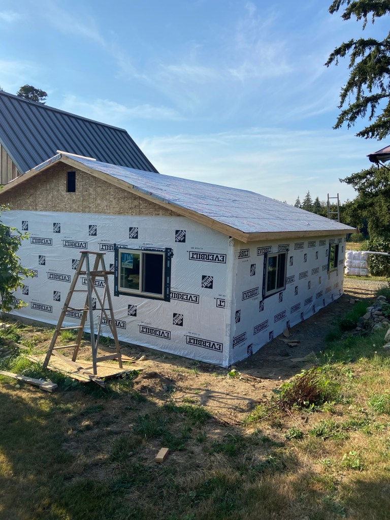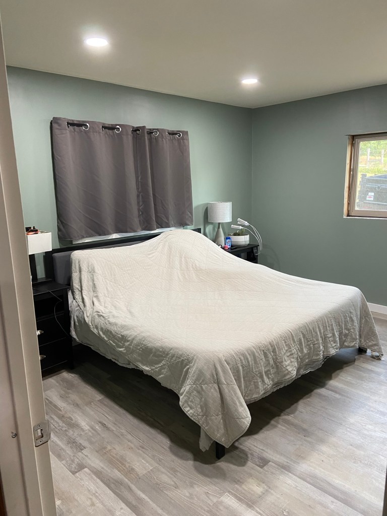 Then in January 2022, we got the incredible news that we were pregnant! We were so ready to start growing our family…but very quickly realized that the cabin with one loft bedroom wasn’t going to be big enough to grow a family in. And so we started our addition project. We planned to do a master suite with a full bathroom and a walk through closet. A big hall closet. A second bedroom across the hall. And a mudroom complete with entryway, laundry, and pantry; plus a dog bathing area and sleeping area.